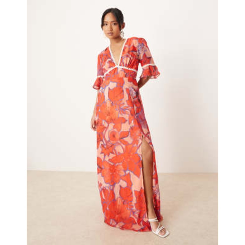 Shop the latest Hope & Ivy Petite frill sleeve maxi dress with keyhole back in coral print trends with ASOS! Free delivery and returns (Ts&Cs apply), order today!