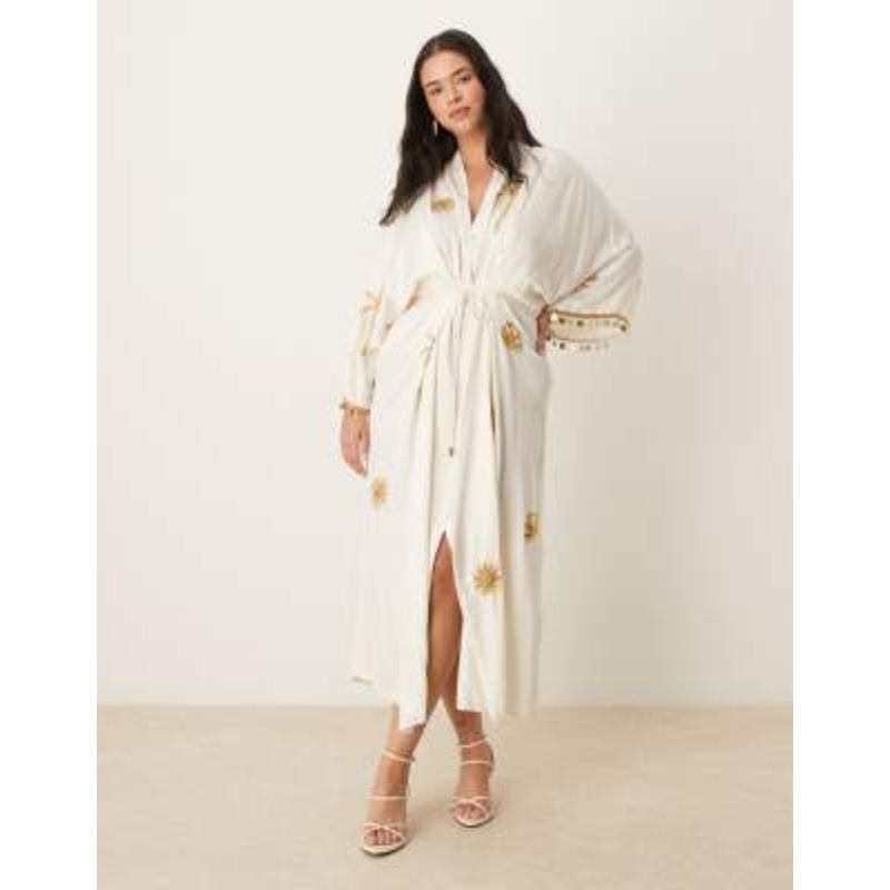Shop the latest Hope & Ivy Plus embellished tie waist kimono wrap midi dress in ivory trends with ASOS! Free delivery and returns (Ts&Cs apply), order today!