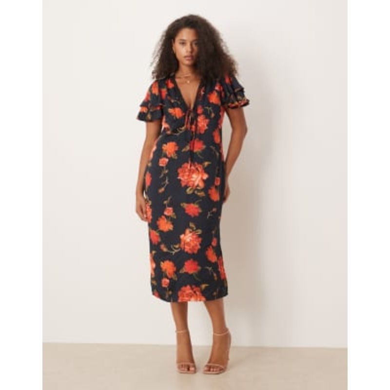 Find the best selection of Hope & Ivy Plus v-neck ruffle sleeve midi tea dress in black and red floral. Shop today with free delivery and returns (Ts&Cs apply) with ASOS!