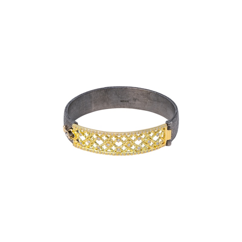 Bracelet 18k Yellow Gold and Grey Sterling Silver with Crivelli Huggie with 0.561CT White Diamonds.