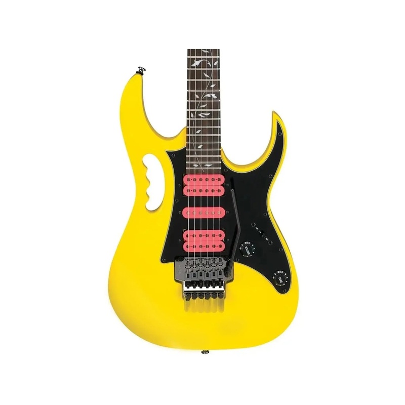 A trio of Infinity pickups provides this electric yellow model with its massive tonal range. The neck position ceramic humbucker is voiced for a warmer, richer tone, while the Alnico V bridge humbucker is a magnificent lead pickup, lively and confrontational, with an enhanced mid-range output when you most need it. Japans jewel in the crown, Ibanez has always been at the coalface of developing the most innovative tools for electric specialists pushing the boundaries of guitar music. In partnership with Steve Vai, they have created a uniquely versatile instrument, delivering a sonic punch while maintaining a classic, svelte aesthetic.