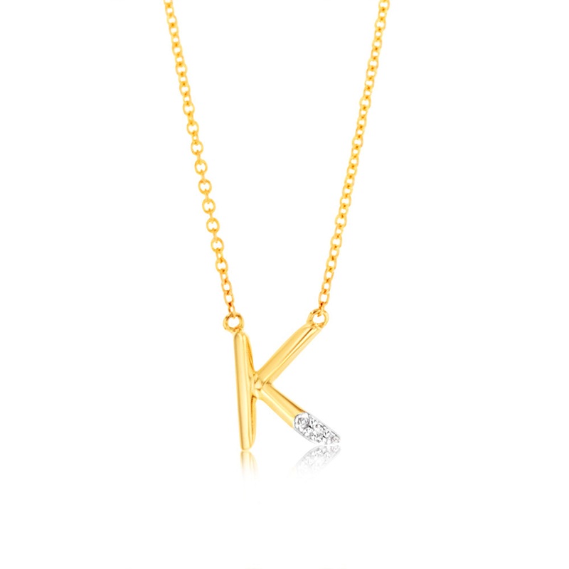 Initial K Diamond Pendant in 9ct Yellow Gold