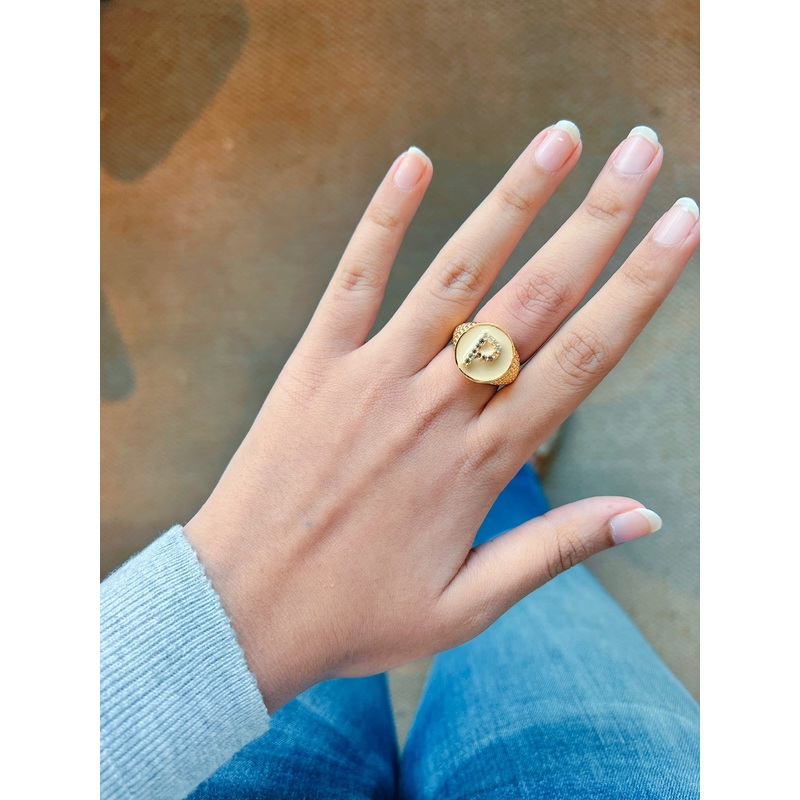 The Iniziale BlingBeige ring is a part of our Charm collection.Our Iniziale BlingBeige rings are all you need to get your glam on! Personalised With your initial, the most gorgeous colour enamels, Swarovski crystal accents & 24K gold plating- this is every