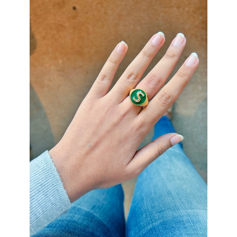 The Iniziale BlingGreen ring is a part of our Charm collection. Our Iniziale BlingGreen rings are all you need to get your glam on! Personalised With your initial, the most gorgeous colour enamels, Swarovski crystal accents & 24K gold plating- this is ever