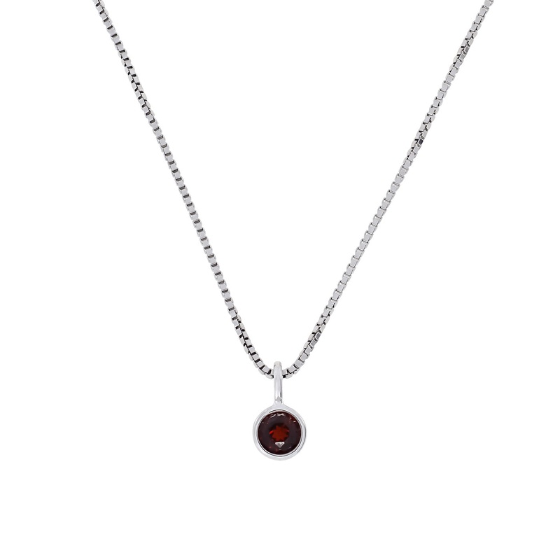 Our sterling silver January birthstone pendant displays a rich red garnet gem set in a simple polished surround.Each month of the year is associatedwith a different gemstone whichbrings luck to the wearer. Thebirthstone for January is garnet.This beautiful semi-preciousgemstone is a rich and deep redcolour. Passionate red garnetgemstones represent love andeternal friendship.
