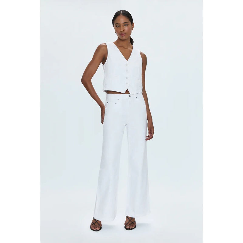 The it-girl fit. Jadyn is designed to sit low on the hips, with a relaxed palazzo leg silhouette. Crafted from a lightweight rigid denim without stretch that holds it shape. Vivid White is the perfect color for a Summer garden Party, festival, or just hang