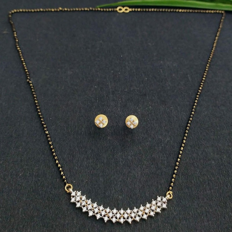 This JCM Gold Plated Austrian Stone Manglasutra is the perfect combination of elegance and traditional style. With its stunning gold plated design and sparkling crystal stones, it is sure to add a touch of sophistication to any outfit. Made with high-quality materials, this manglasutra is not only beautiful, but also durable. Complete your look and showcase your impeccable taste with this exquisite piece of jewelry.Note: Image may be vary slightly from the actual product.