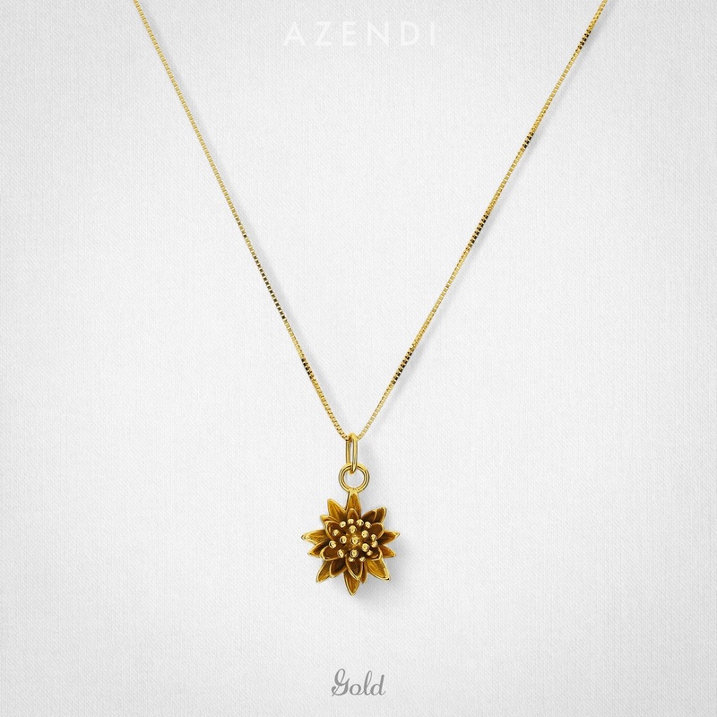 The waterlily’s finest hour is captured in the paintings of Monet. The Victorians used the waterlily in the language of flowers to symbolise purity of heart. The waterlily is the birth flower for July. This beautifully detailed Waterlily pendant is formed from highly polished 9 carat gold.