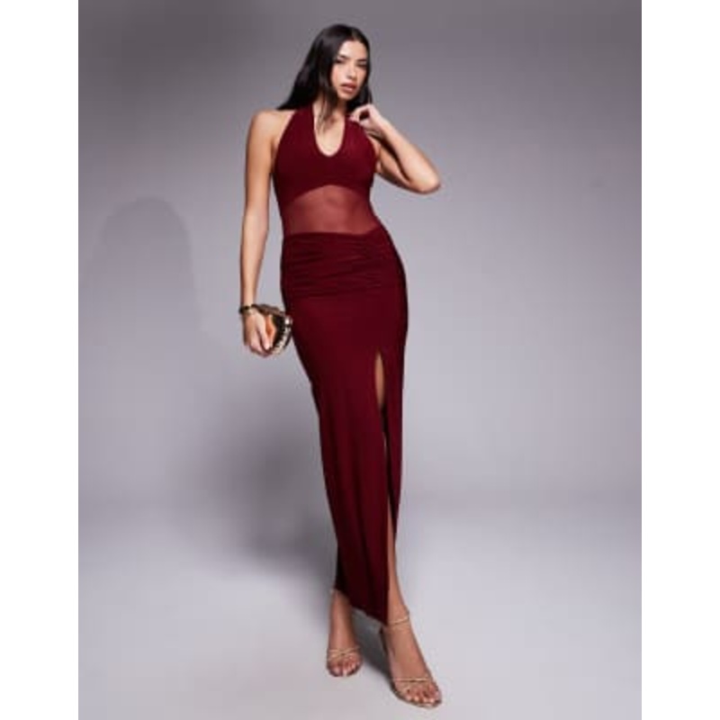Browse online for the newest Kaiia exclusive double layered slinky halterneck sheer mesh panel maxi dress in burgundy styles. Shop easier with ASOS’ multiple payments and return options (Ts&Cs apply).