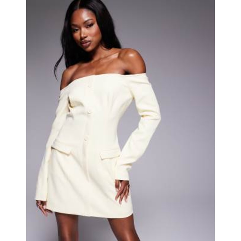 Find the best selection of Kaiia exclusive off the shoulder tailored button front pocket detail mini dress in lemon. Shop today with free delivery and returns (Ts&Cs apply) with ASOS!