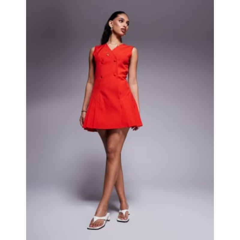 Find the best selection of Kaiia exclusive tailored sleeveless button front hip pleat detail mini dress in red. Shop today with free delivery and returns (Ts&Cs apply) with ASOS!