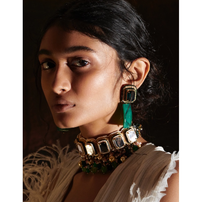 The Kashni Choker is a part of our Jannah CollectionAdorned with all things pretty- mirrors, beads and pearls, this gorgeous choker is sure to catch your attention with its exquisite craftsmanship and detailing.Discover exquisite jewellery perfect for wedd
