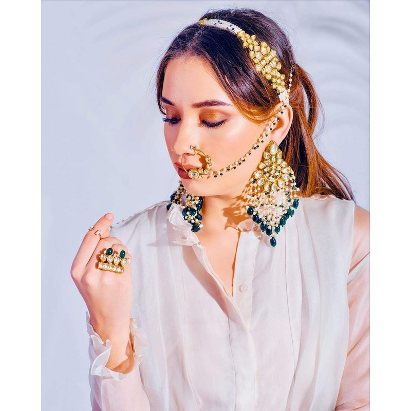 Handcrafted in-house and set with pearls, kundan and green stones, the Kiara Ring will make you stand out at any festive or party event!We think it works well with both Indian and contemporary looks.