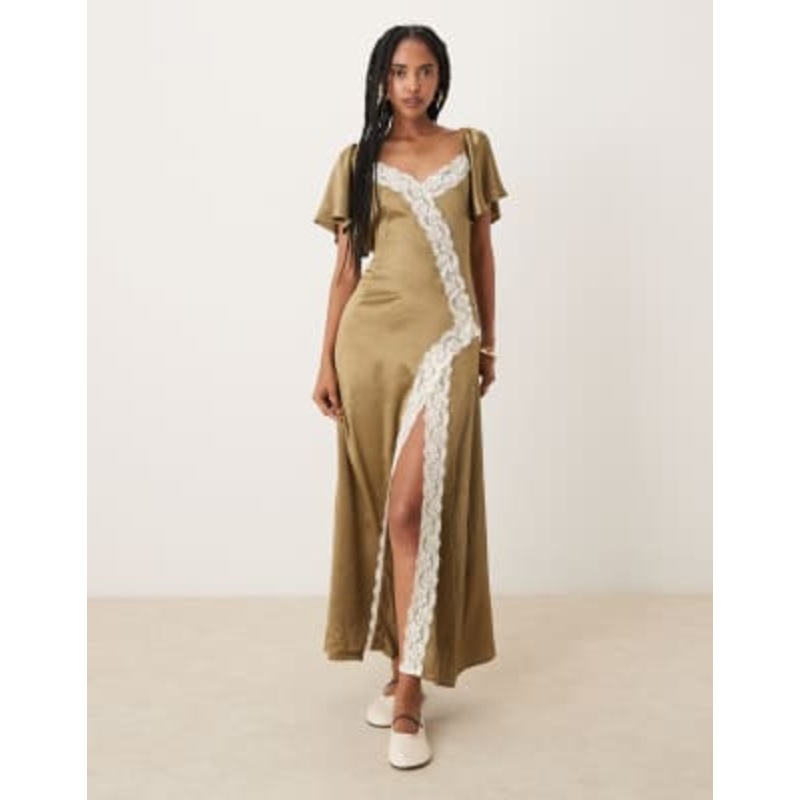 Browse online for the newest Kiss The Sky satin lace detailed midaxi dress in olive styles. Shop easier with ASOS’ multiple payments and return options (Ts&Cs apply).