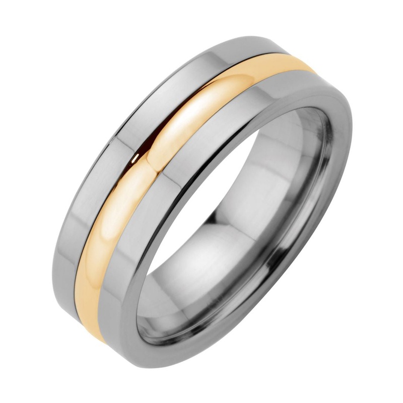 Kohinoor Duetto Engagement Ring Titanium and Yellow Gold, 6 mmKohinoor Duetto is a flat-style titanium ring with a D-shaped yellow gold band. The model combining titanium and yellow gold is a good alternative to a traditional gold engagement ring. As a mat