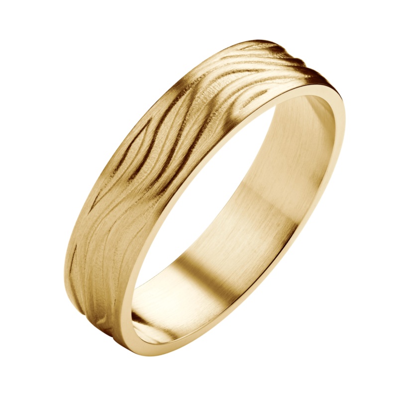 The surface of the stylish Kohinoor Aalto engagement ring has a wave pattern. The Aalto engagement ring is part of the Rytmi collection and was designed by Assi Arnimaa. The ring is made of 14 carat yellow gold and its width is 5 mm. The Aalto ring from the Rytmi collection is also available in white gold.