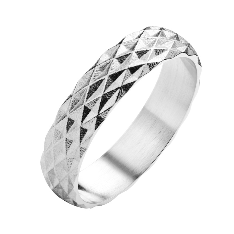 The surface of the stylish Kohinoor Ruutu engagement ring has a striking check pattern. The Ruutu engagement ring is part of the Rytmi collection and was designed by Sami Laatikainen. The ring is made of 14 carat white gold and its width is 5 mm. The Ruutu ring from the Rytmi collection is also available in yellow gold.