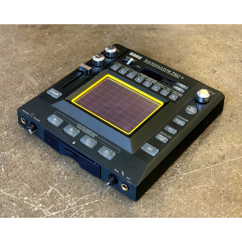 The Kaossilator Pro+ Dynamic phrase Synthesizer/ loop Recorder is a freely playable synthesiser. Play notes and manipulate sounds in real time with the easy to use touchpad.A total of 250 sound programs (including drum program) cover a wide range of styles