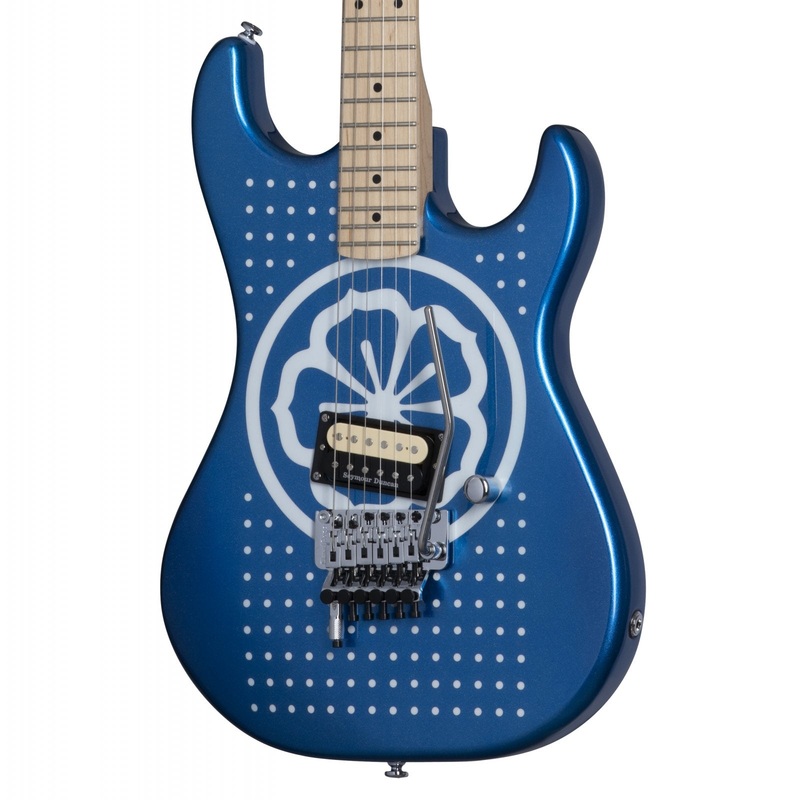 In many cultures, the lotus flower represents purity, enlightenment, regeneration, and rebirth. The Baretta White Lotus graphic was designed by Kramer Custom Graphic Artist Eric Caspers, who was inspired by movie underdogs from the 80s who overcame the odds to triumph in the end. The Baretta is a tribute to one of the most iconic and original guitar designs in rock. Features an alder body, satin-finished hard maple neck, a single Seymour Duncan JB zebra-coil humbucker, and a Floyd Rose 1000 series tremolo with an R2 1000 series locking nut. It also comes equipped with an EVH D-Tuna and a Floyd Rose LRT-L40 Trem Stop, and it is finished in an eye-catching White Lotus Candy Blue. A premium gig bag is also included.