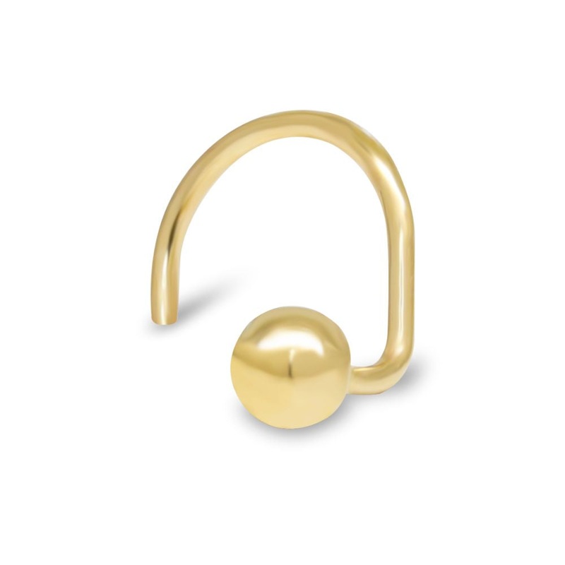 Ihastuttava 14 karaatin keltakultainen nenkoru, jossa pyre2,5mm halkaisijan pallo.