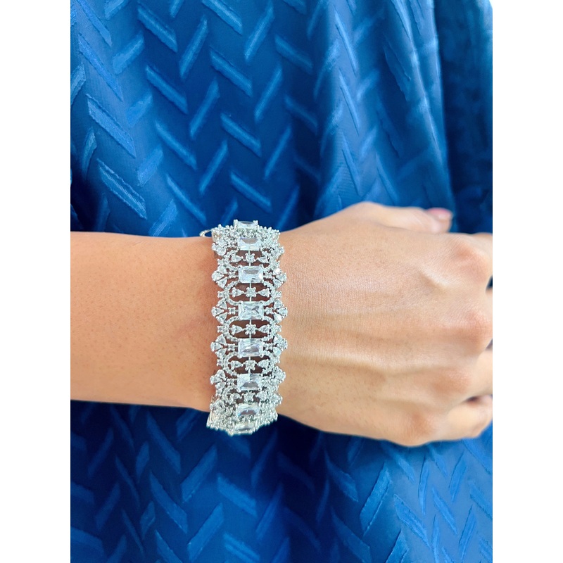 The Kylie Diamond Bracelet are the statement wear you need !!!Finely hand-crafted with semi precious stones, this earring is sure to steal the spotlight with its intricate work and plating shimmer. These earringswill give your Western ensembles a flawlessly beautiful look.