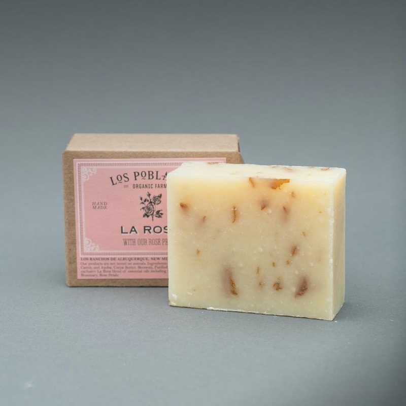 Designed by pioneering female landscape architect, Rose Greely, in 1932, generations of visitors to the property have enjoyed the incredible scents and colors of the garden that burst into life every spring. Lovingly cared for by Los Poblanos Inn founder and owner, Penny Rembe, for the last three decades, the rose bushes provide the delicate petals that infuse the La Rosa Bar Soap with its signature scent.