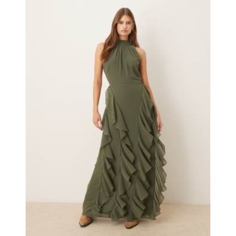 Shop the latest Lace & Beads backless ruffle maxi dress in khaki trends with ASOS! Free delivery and returns (Ts&Cs apply), order today!