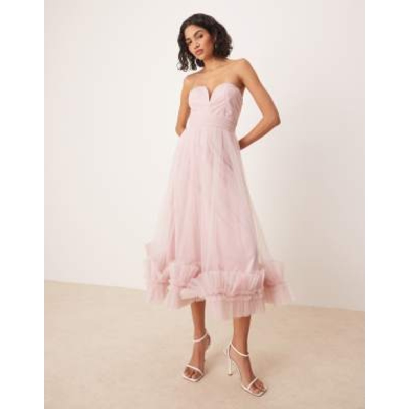Be the first to review “Lace & Beads corset tulle ruffle hem midaxi dress in powder pink”