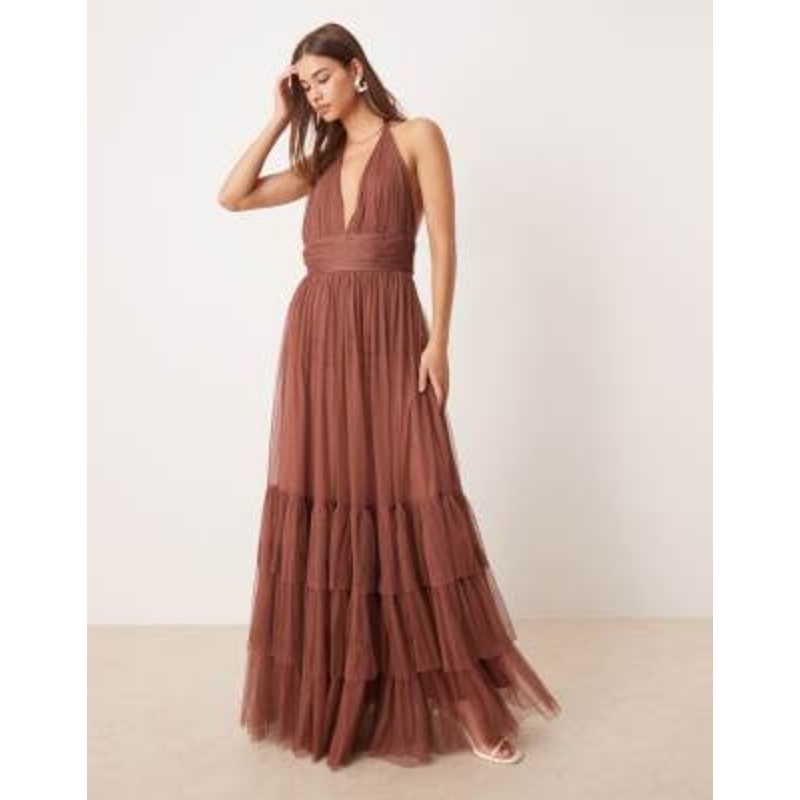 Shop the latest Lace & Beads halterneck tiered maxi dress in rose brown trends with ASOS! Free delivery and returns (Ts&Cs apply), order today!