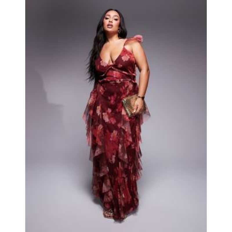 Find the best selection of Lace & Beads Plus tulle ruffle maxi dress in burgundy red rose. Shop today with free delivery and returns (Ts&Cs apply) with ASOS!