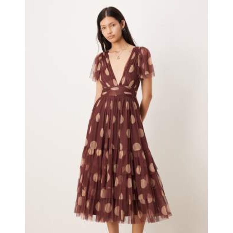 Browse online for the newest Lace & Beads v neck tulle midi dress in rose brown beige polka dots styles. Shop easier with ASOS’ multiple payments and return options (Ts&Cs apply).