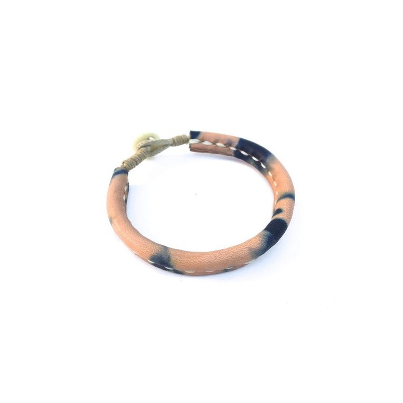Leather Wrap on Cotton Cord Hand Stitch Antique Bone Button / Loop Closure Small: 7.5 Cuff approx 1/2 wide