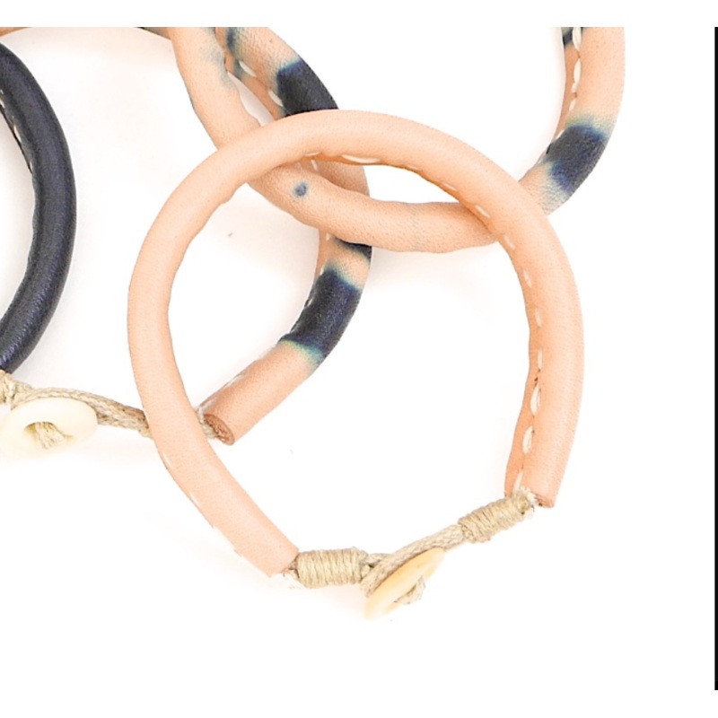 Leather Wrap on Cotton CordHand StitchAntique Bone Button / Loop Closure Handmade by Made Solid in LA