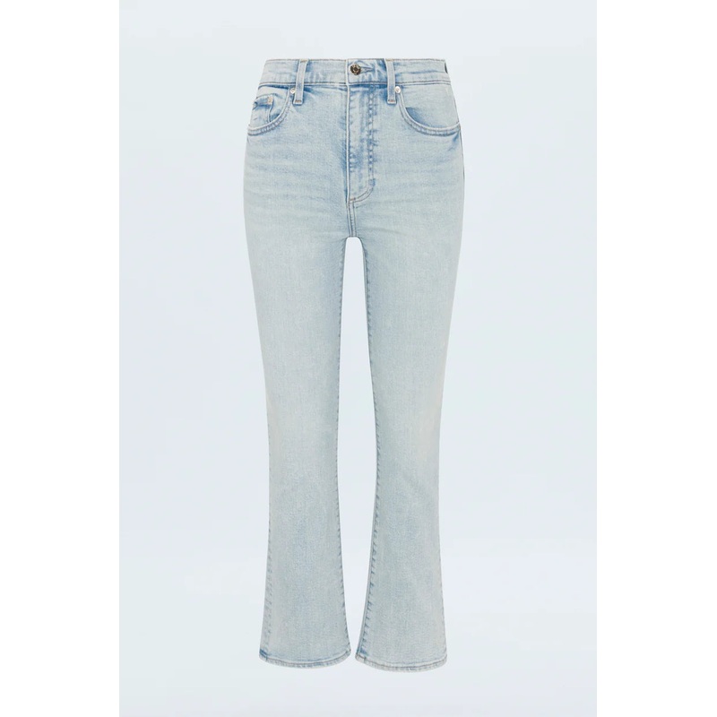 High rise waist with a boot cut leg silhouette and cropped ankle hem. Crafted from our Pistola’s best selling comfort-stretch denim. Offered in a light blue wash with whiskering and fading.