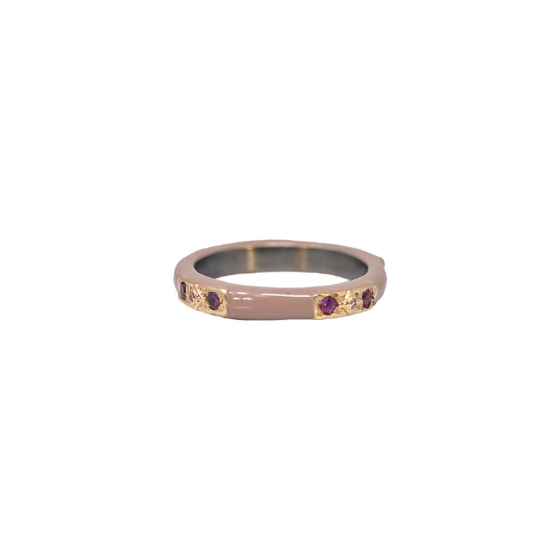 LIGHT NUDE ENAMEL STACK BAND WITH CHAMPAGNE DIAMONDS AND PURPLE GARNETS