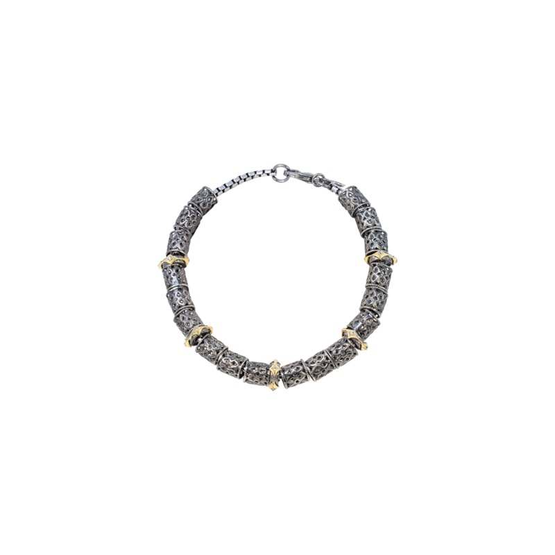 Romero Bracelet 18KT Yellow Gold and Light Grey Sterling Silver with 0.123 CT Grey Diamonds.