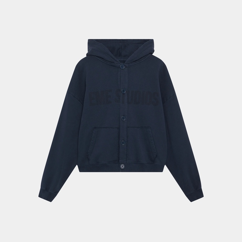 A thoughtfully curated piece that seamlessly blends the texture and material of a hoodie with the structure of a cardigan.Male is 189 cm and wears size LFemale is 177 cm and wears size M