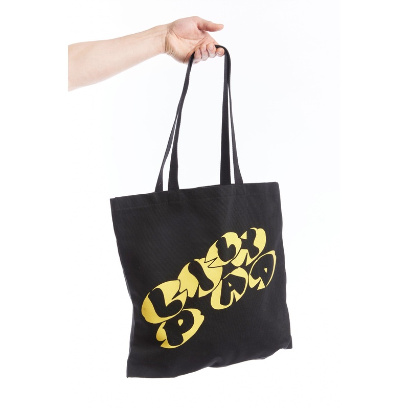 Lilypad logo tote bag in blackYellow screen print at front100% CottonMade in Canada