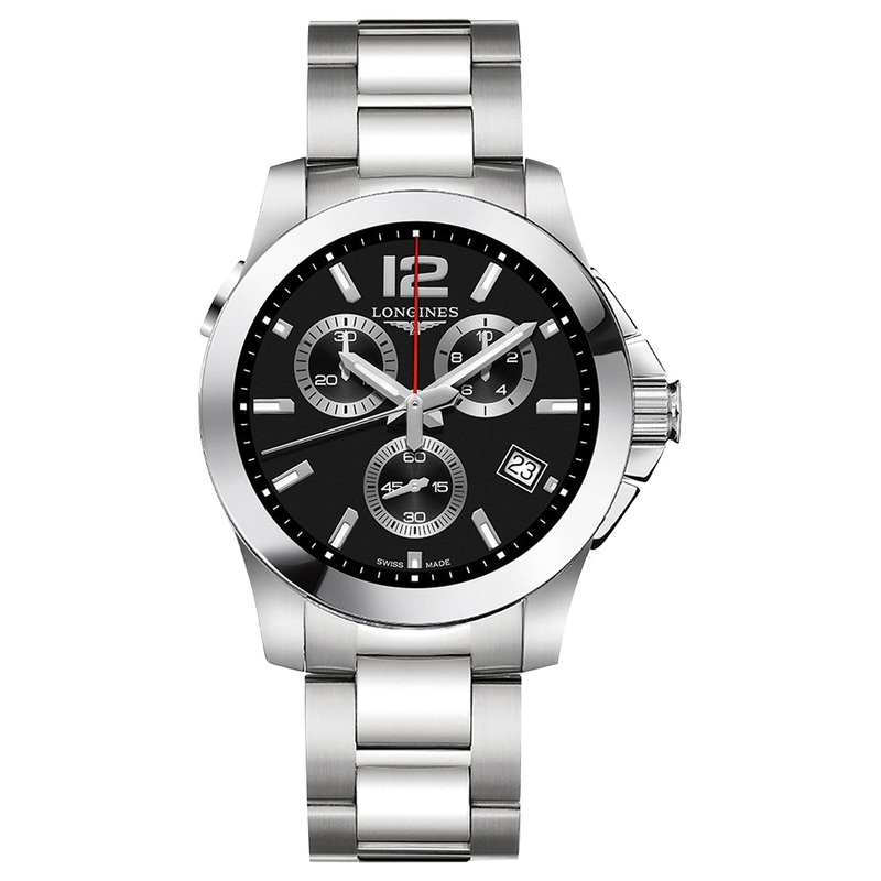 Longines Conquest Chronograph Stainless Steel Black Dial Date Divers Quartz Mens Watch Model# L3.702.4.56.6 / L37024566
