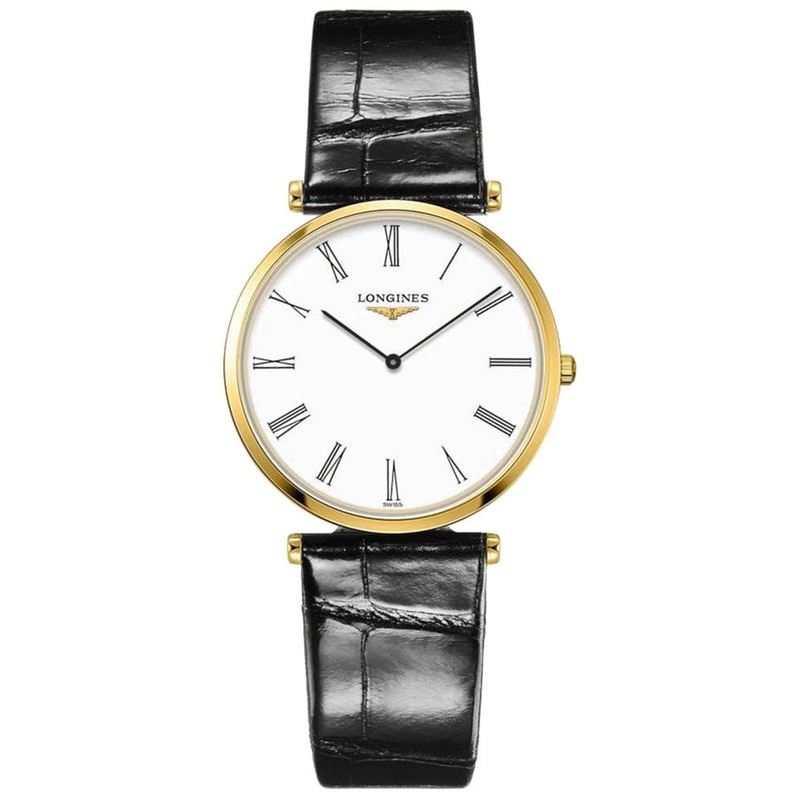 Like all of our watches, this Longines La Grand Classique Yellow Gold PVD White Dial Black Leather Strap Quartz Womens Watch is brand new and comes in its original packaging.