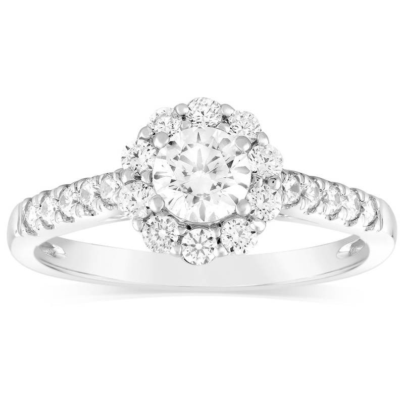 Luminesce Lab Grown 14ct White Gold 1 Carat Diamond Solitaire Fancy Ring with 1/2Carat Central Bril Cut