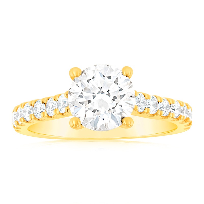 Luminesce Lab Grown 2 Carat Diamond Engagement Ring with 1.5 Carat Certified Centre Diamond in 18ct Yellow Gold