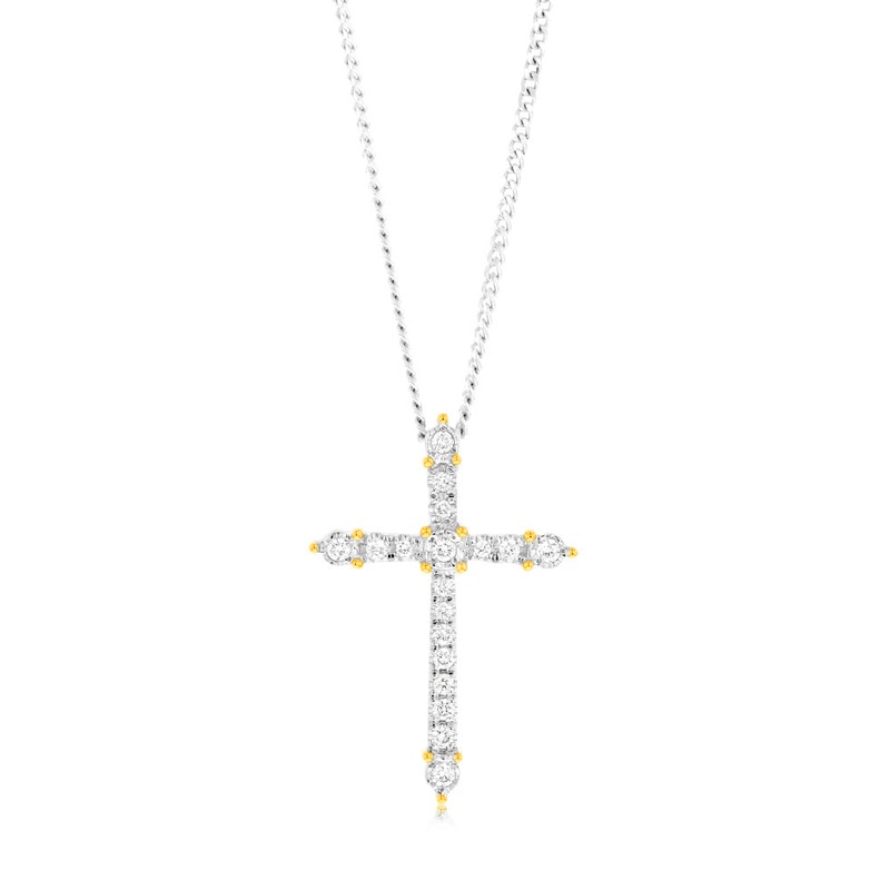 Luminesce Lab Grown 9ct Yellow Gold 1/10 Carat Cross Diamond Pendant