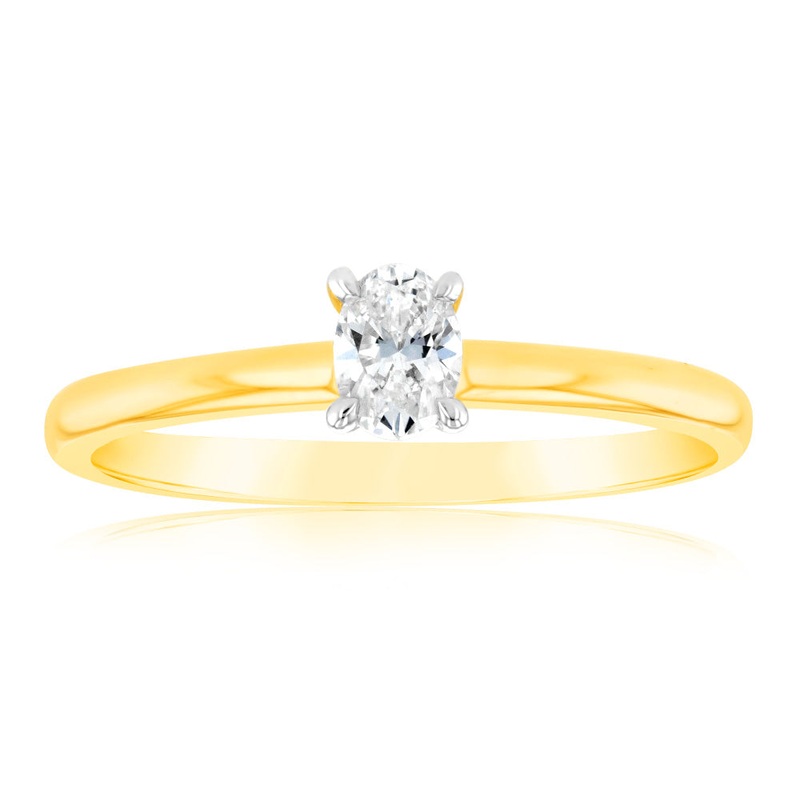 Luminesce Lab Grown 9ct Yellow Gold 1/4 Carat Oval Cut Solitaire Diamond Ring