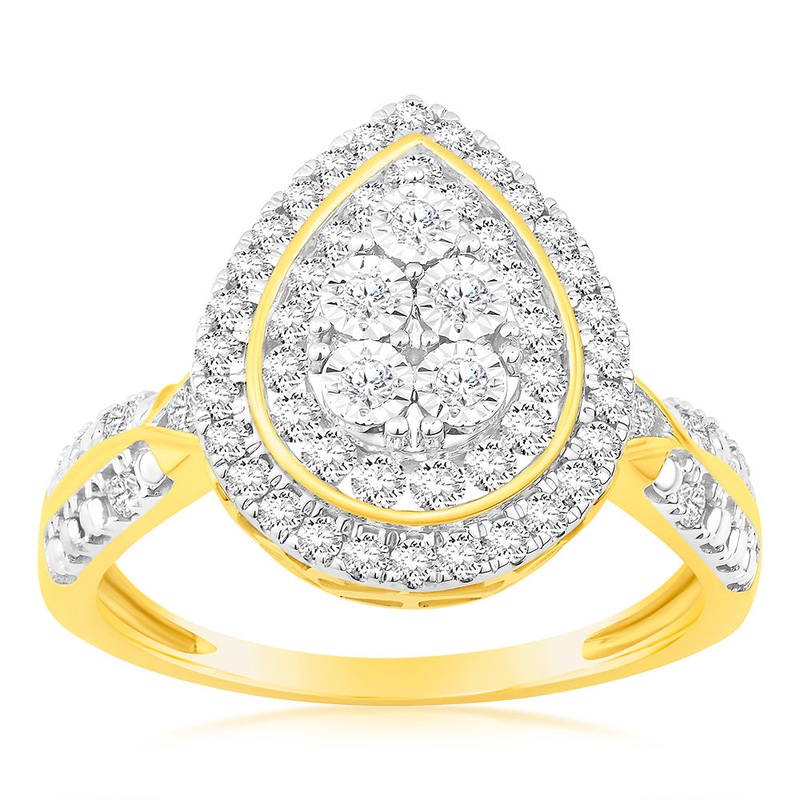 Luminesce Lab Grown 9ct Yellow Gold Pear Shaped Ring in 56 Brilliant Cut Diamonds