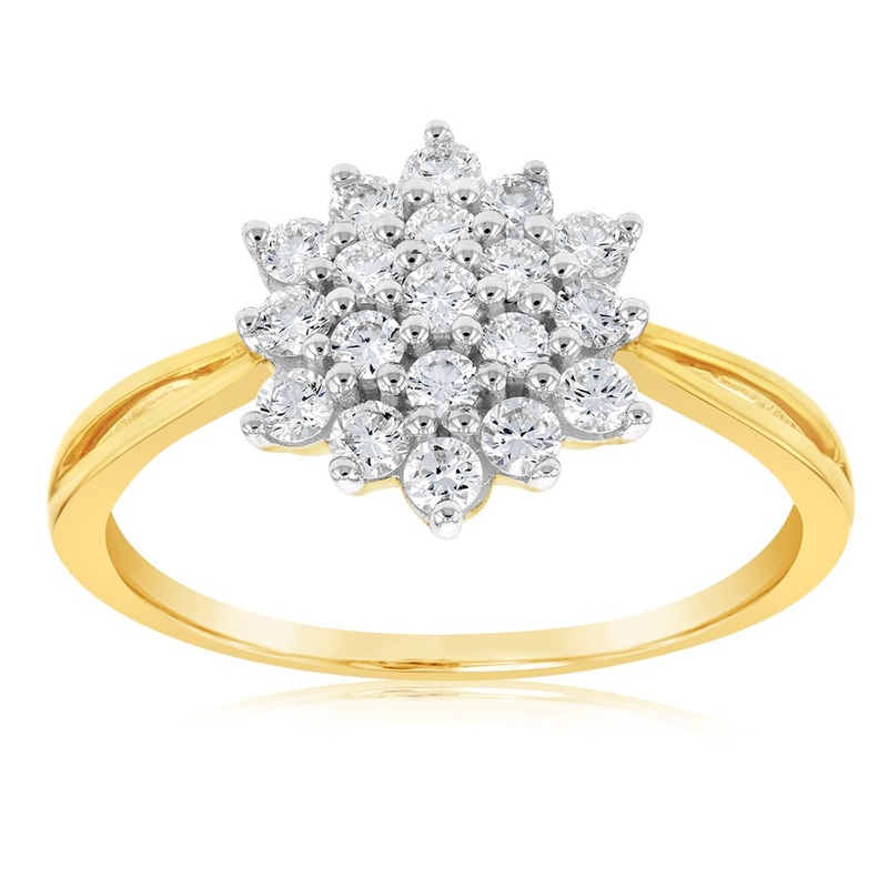 Luminesce Lab Grown Diamond 1/2 Carat Cluster Dress Ring in 9ct Yellow Gold