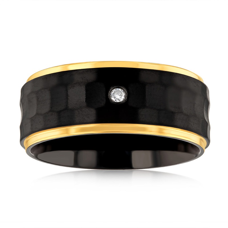 Luminesce Lab Grown Gold Plated Black Zirconium Diamond Ring