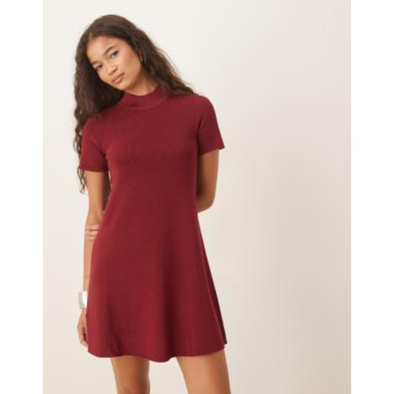 Find the best selection of Mango knit high neck short sleeve mini dress in dark red. Shop today with free delivery and returns (Ts&Cs apply) with ASOS!