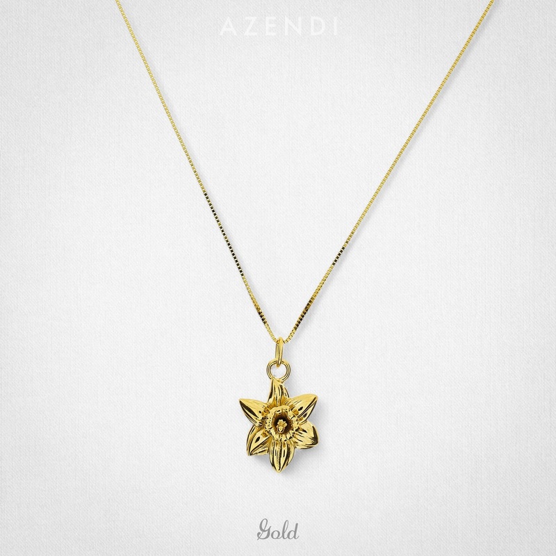The daffodil is a celebrated sign of the British spring. In the Victorian language of flowers the daffodil signified joy and happiness. The daffodil is the birth flower for March. This beautifully detailed Daffodil pendant is formed from highly polished 9 carat gold.