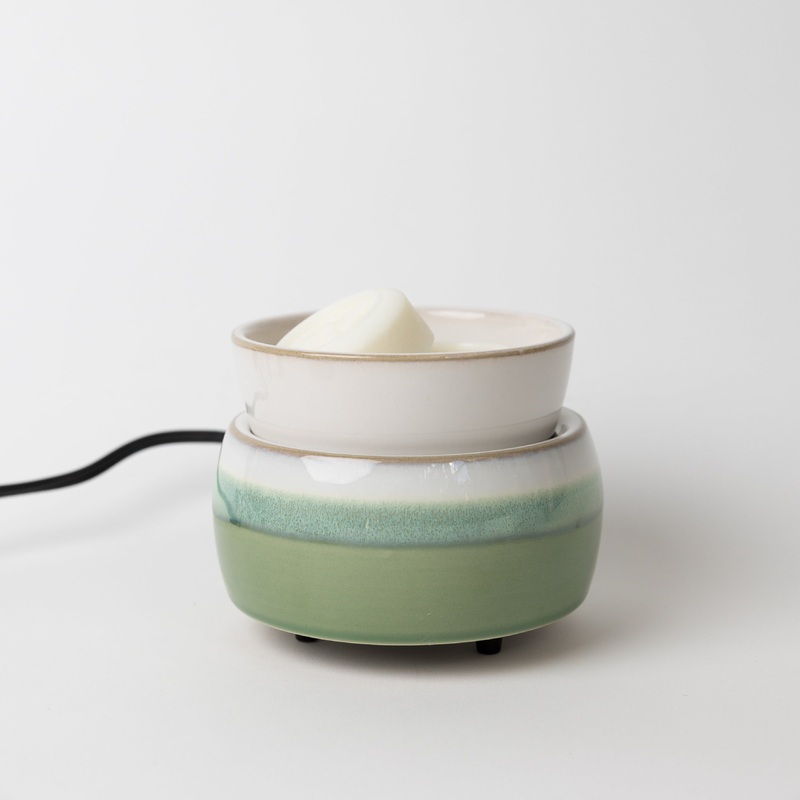 This versatile 2-in-1 Wax Warmer offers the convenience of easily switching between melting wax melts in the removable top dish or warming a candle up to 10 oz on the heating pad. The ceramic vessel's exquisite glazing not only adds a touch of elegance but